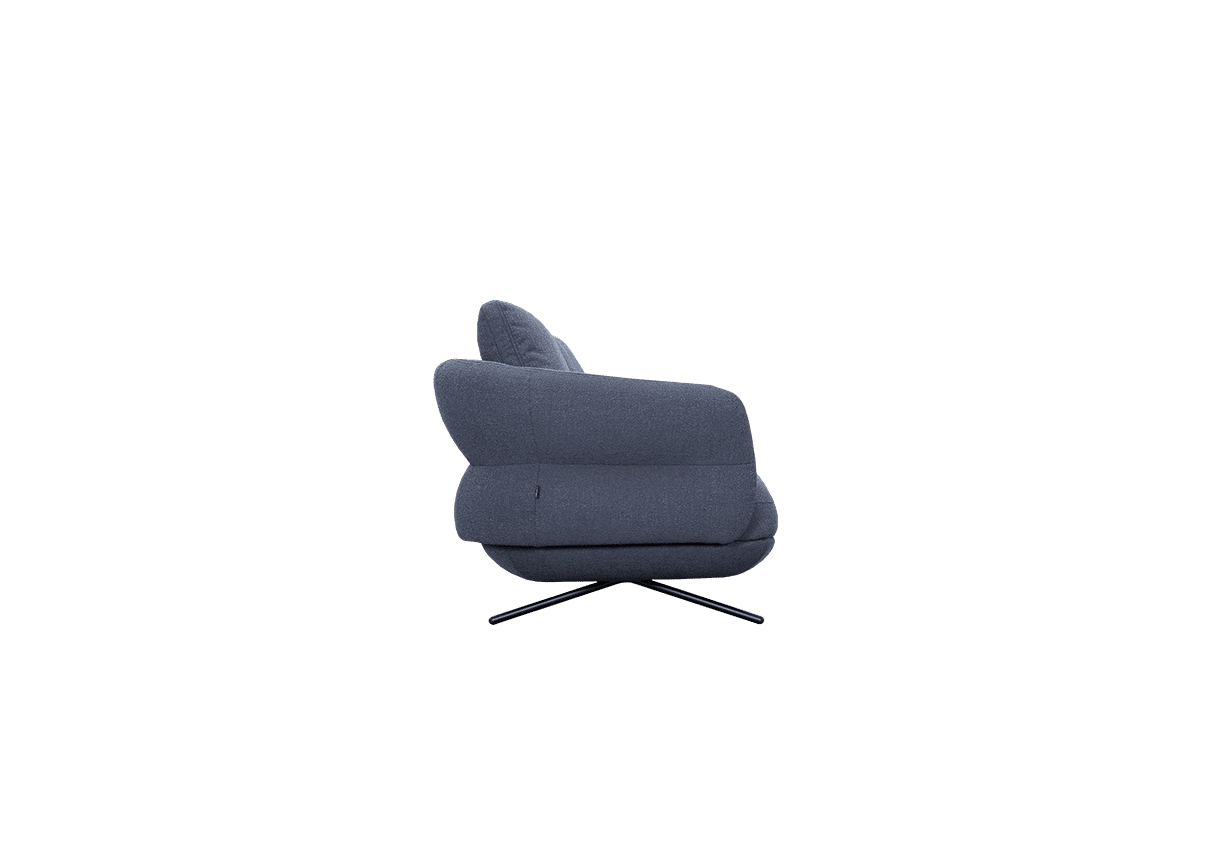 TULIP de Stan Joly présente des accoudoirs pincés et incurvés au design exclusif, des coussins d'assise épais et des coussins de dossier lâches et est disponible avec des modules de fauteuil et de repose-pieds en option pour compléter cet ensemble élégant